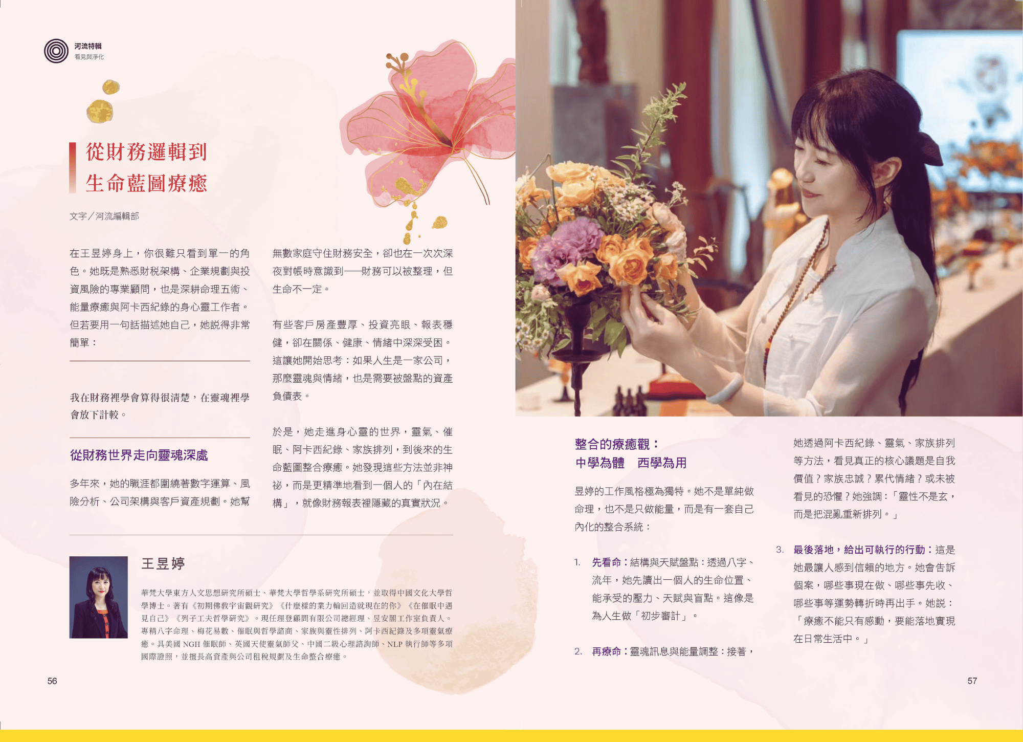 在王昱婷身上,你很难只看到单一的角色。她既是熟悉财税架构、企业规划与投资风险的专业顾问,也是深耕命理五术、能量疗愈与阿卡西纪录的身心灵工作者。